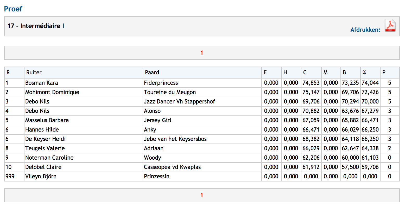 De combinatie reed naar de overwinning met een topscore van 74,044%. Fiderprincess een merrie die steeds gaat groeien in het concours, altijd werkwillig met een gouden karakter.